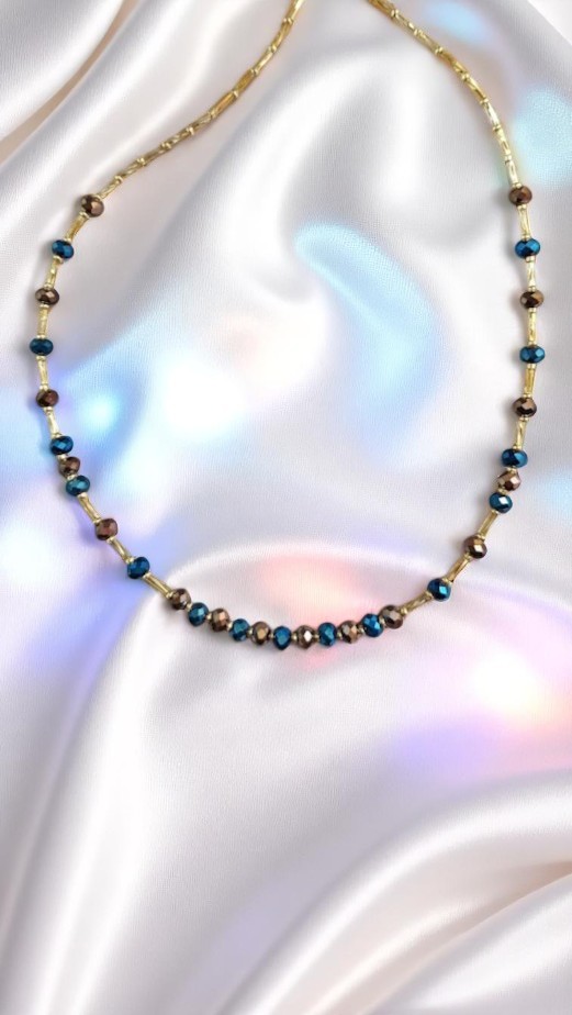 Φως, σκιές και αντανακλάσεις από ουράνια τόξα σε μία αρμονική ακολουθία χαντρών. Αυτό το κολιέ είναι σαν να φοράς αύρα. Σου θυμίζει να εμπιστεύεσαι το φως που εκπέμπεις — ακόμα κι όταν δεν το βλέπεις.