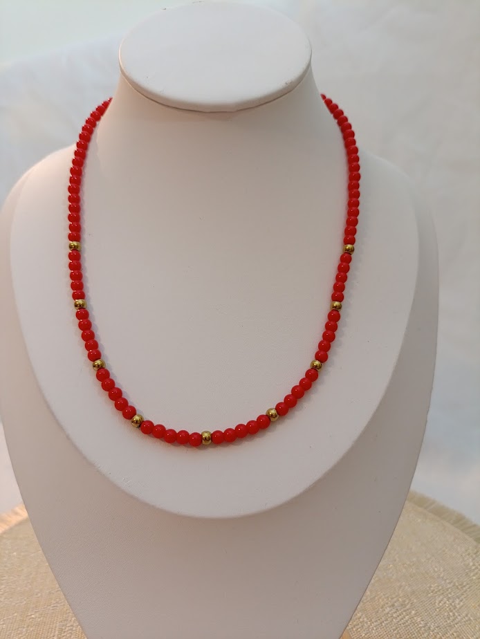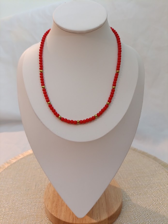 Κοραλλί αποχρώσεις με μεταλλικές λεπτομέρειες, σαν φιλί του ήλιου στη θάλασσα. Ένα κολιέ γεμάτο καλοκαιρινή ενέργεια και χαρά.