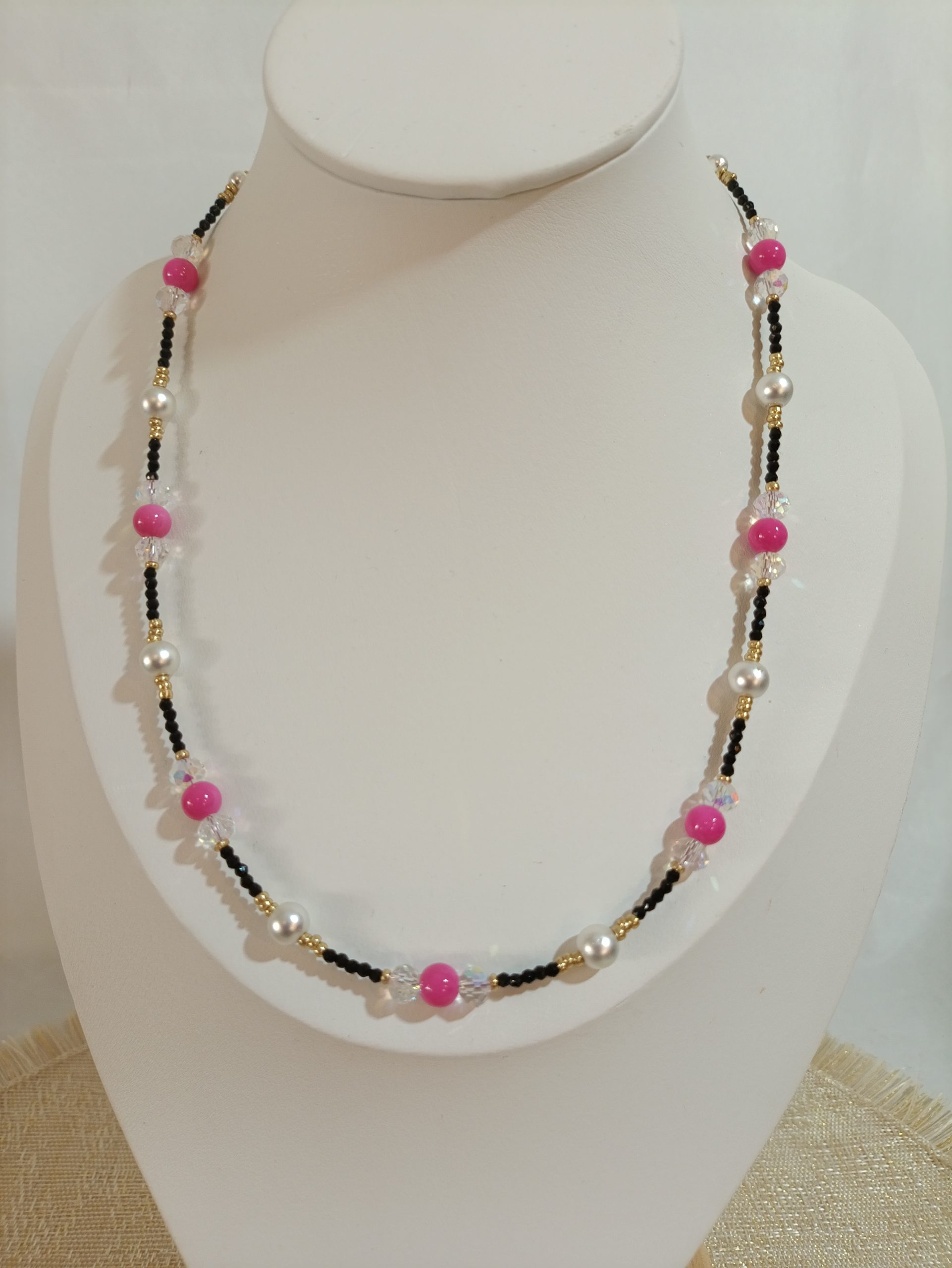 Με ποικιλία χρωμάτων σε έντονο ρυθμό, αυτό το κολιέ είναι σαν γιορτή καλοκαιρινών αναμνήσεων. Κάθε χάντρα θυμίζει ήλιο, φρούτα και ανεμελιά. Ιδανικό για χαρούμενες εμφανίσεις γεμάτες ζωντάνια.