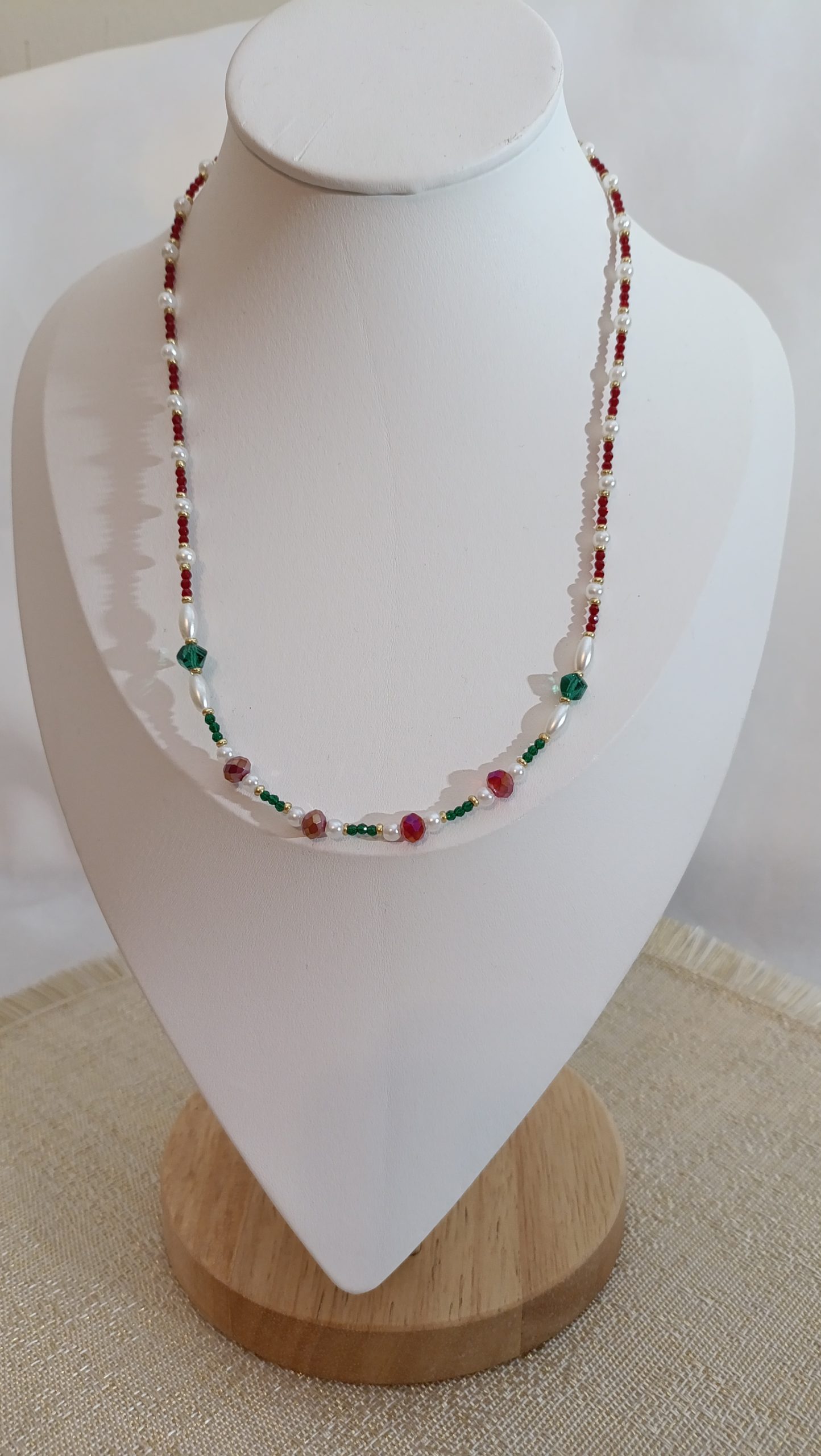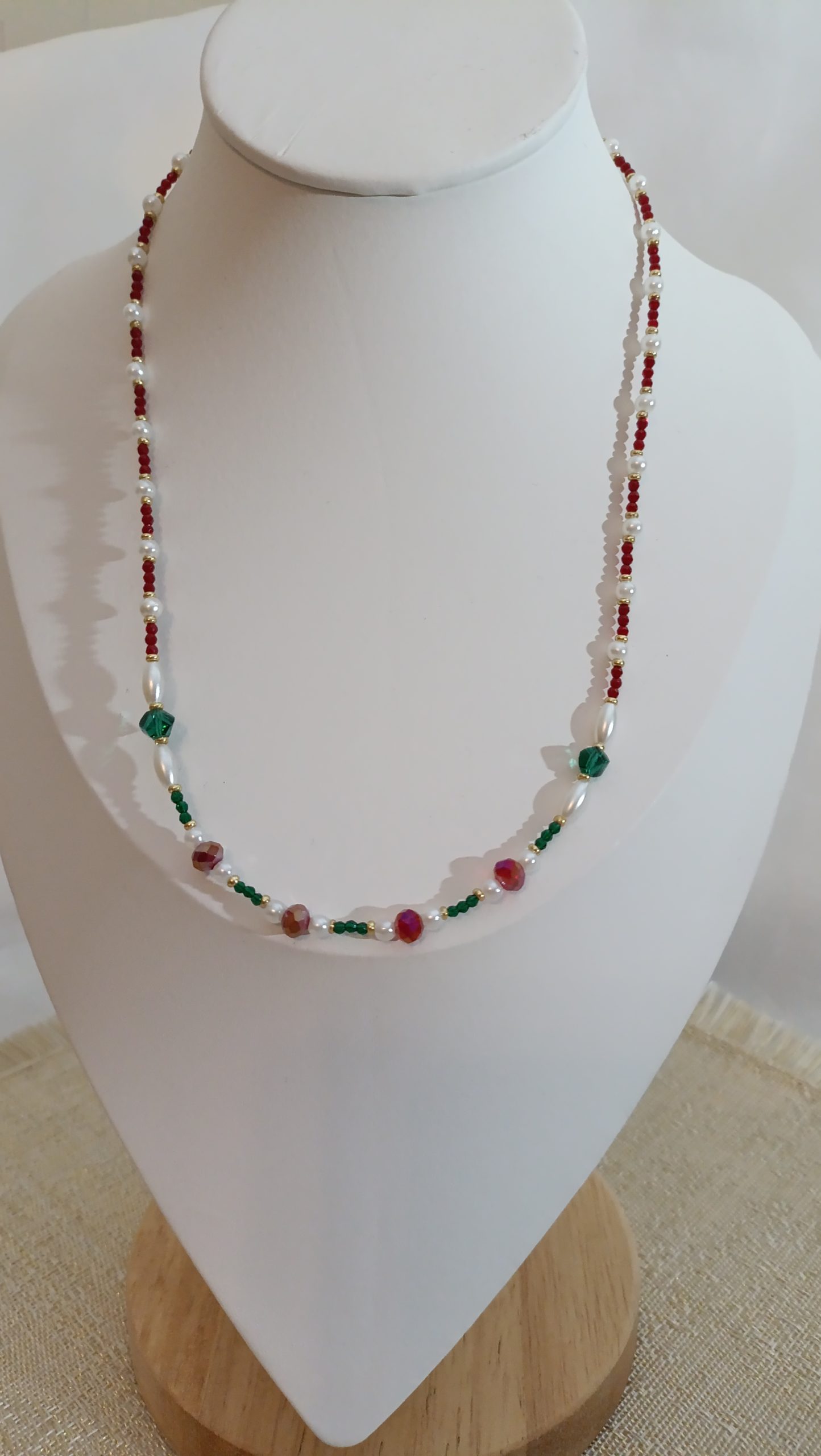 Κεραμιδί και πράσινες χάντρες σε συμμετρικό μοτίβο με λευκές αποχρώσεις.