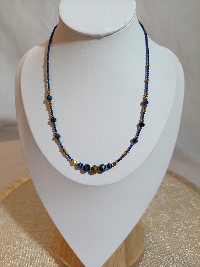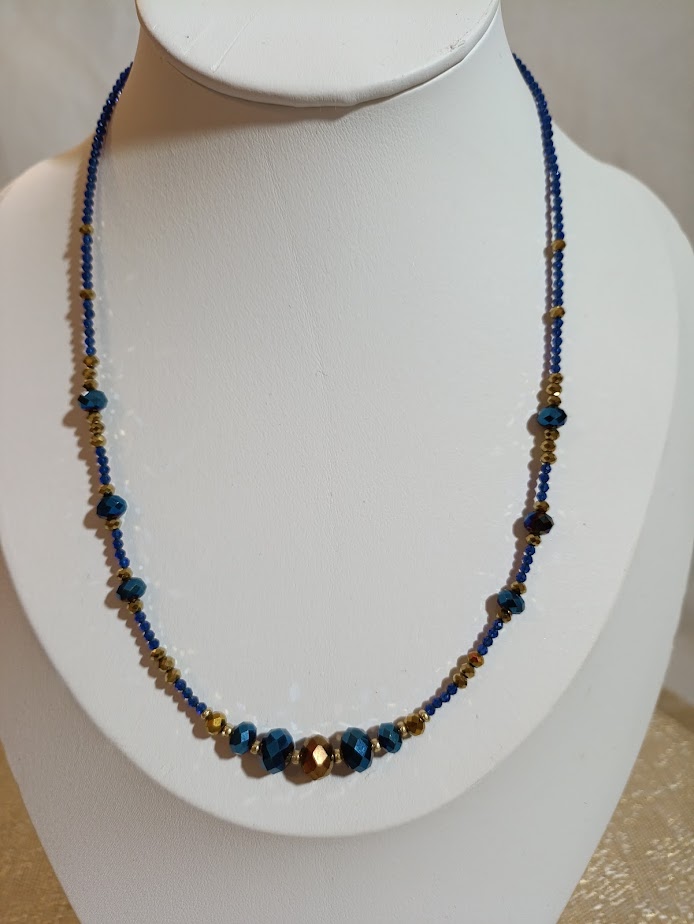 Μπλε και ασημί σε απόλυτη αρμονία, σαν έναστρος ουρανός που λάμπει τη νύχτα. Ένα κολιέ διακριτικό αλλά με δύναμη, για γυναίκες που αγαπούν το σκοτάδι και το φως μαζί.