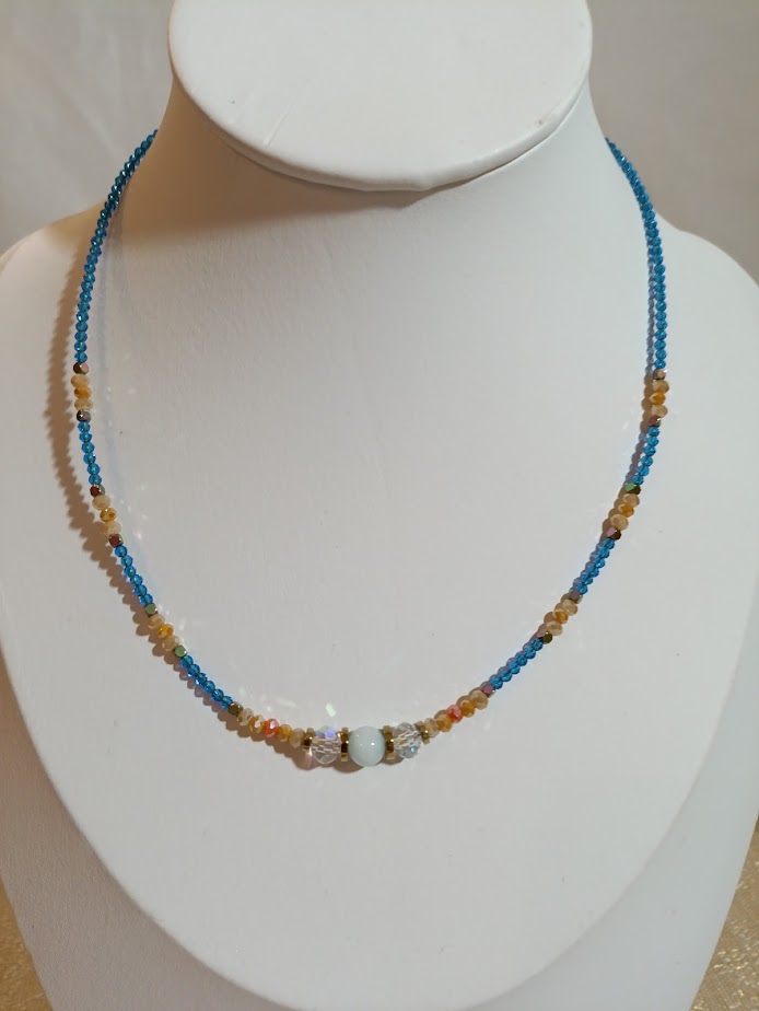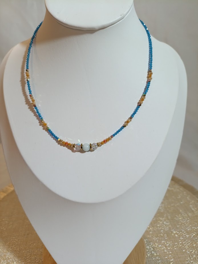 Ασημί λεπτομέρειες αγκαλιάζουν τις χάντρες σαν φως φεγγαριού που καθρεφτίζεται στη θάλασσα. Ένα κόσμημα που αποπνέει μυστήριο και γαλήνη. Για γυναίκες που αγαπούν τις νυχτερινές ιστορίες.