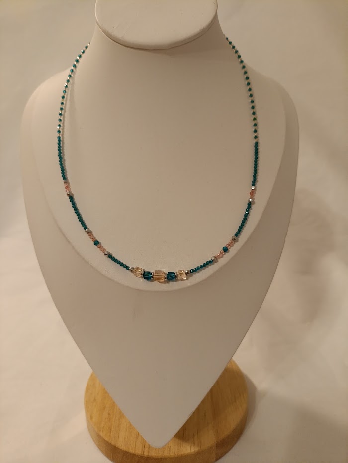 Το βαθύ μπλε συναντά μικρές σπίθες χρώματος, δημιουργώντας μια χορογραφία φωτός πάνω στους ώμους. Θυμίζει άνθισμα μέσα στο νερό, κάτι κρυμμένο αλλά μαγικό. Ένα κόσμημα που ξυπνά περιέργεια και θαυμασμό. Ισορροπεί ανάμεσα στο δυναμικό και το ονειρικό.