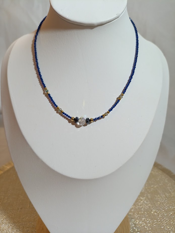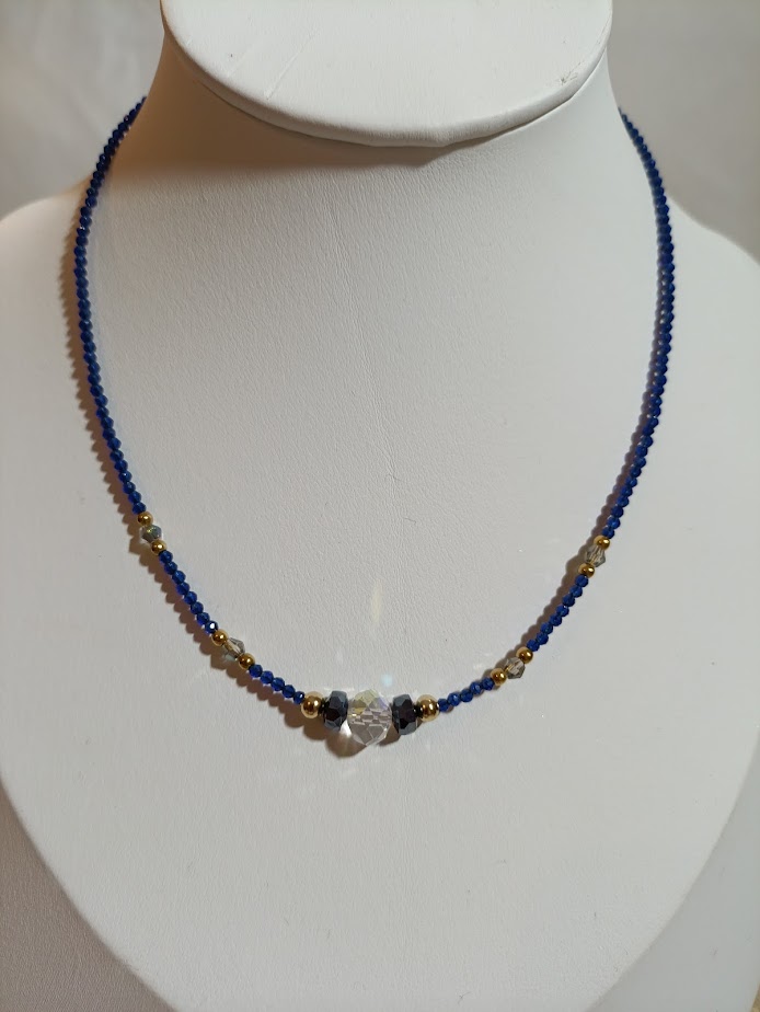 Βαθύ μπλε με λευκές πινελιές σε ένα κολιέ που θυμίζει θαλάσσιο βάθος. Κομψό και μυστήριο μαζί, χαρίζει αίσθηση αρμονίας. Το τέλειο αξεσουάρ για minimal αισθητική.