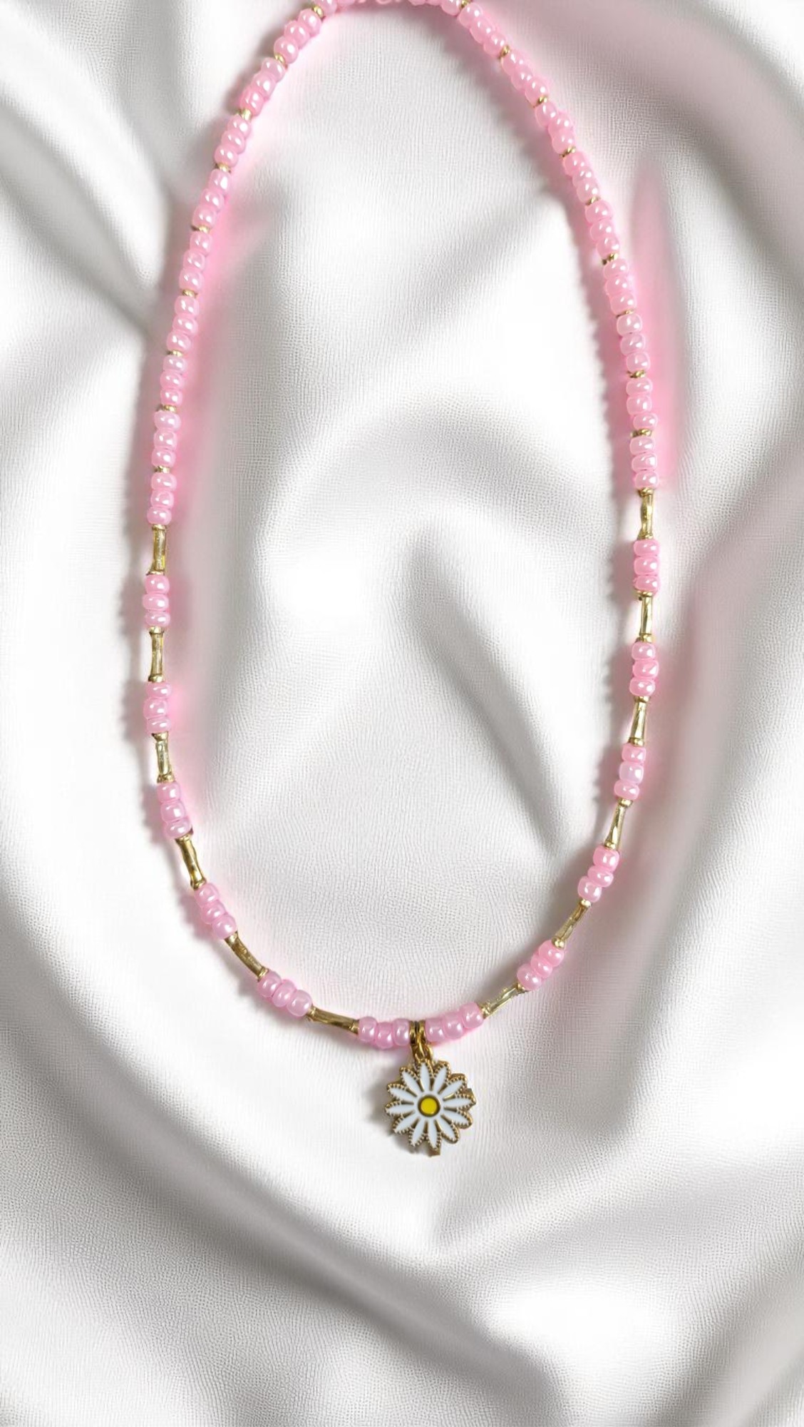 Κολιέ με ηλιοτρόπιο σε λευκό, σαν τις πρώτες αχτίδες ενός ήλιου που ανατέλλει σε ανοιξιάτικο αγρό. Φέρνει τη ζεστασιά του φωτός κοντά στο δέρμα σου. Ιδανικό για εμφανίσεις γεμάτες θετικότητα και φυσική χάρη.