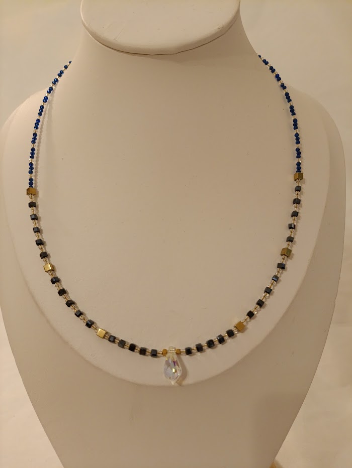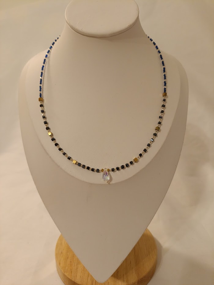Λεπτές αποχρώσεις του μπλε και του λευκού αγκαλιάζουν η μία την άλλη, σαν κύματα που συναντούν απαλά την ακτή. Φέρνει στο νου καλοκαιρινή αύρα και στιγμές καθαρής ελευθερίας. Αέρινο, minimal και φωτεινό, γίνεται δεύτερη επιδερμίδα. Ένα κολιέ που γεννήθηκε για κάθε μέρα.
