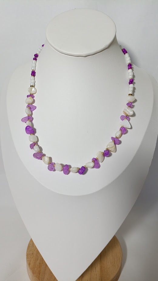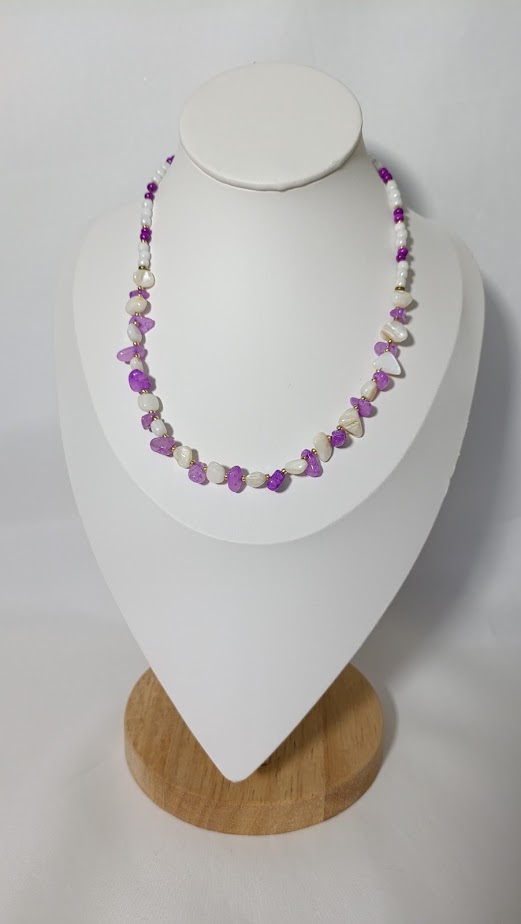 Λιλά, λευκές και διαφανείς πέτρες ενώνονται σε ένα κόσμημα γεμάτο ηρεμία και ρομαντισμό.
