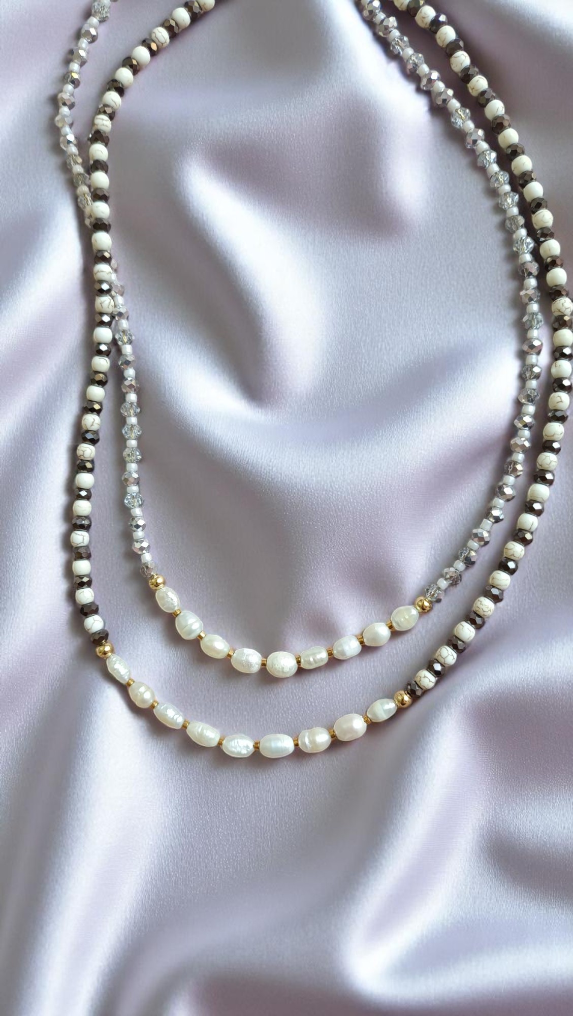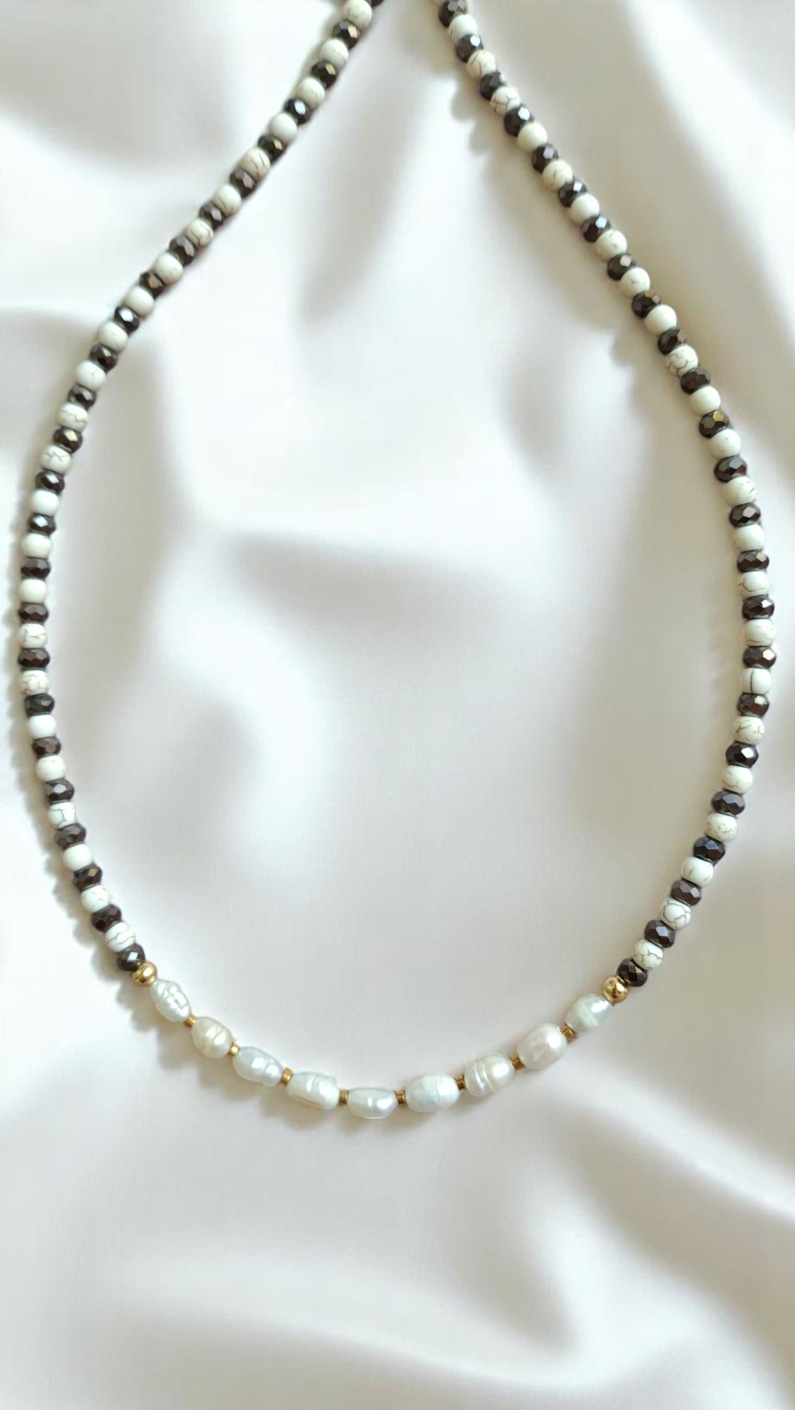 Λευκές χάντρες που θυμίζουν σταγόνες από φως πανσελήνου. Φρέσκο και φωτεινό, για να συνοδεύει τις all-white ή boho εμφανίσεις σου.