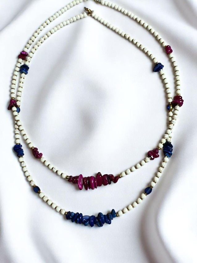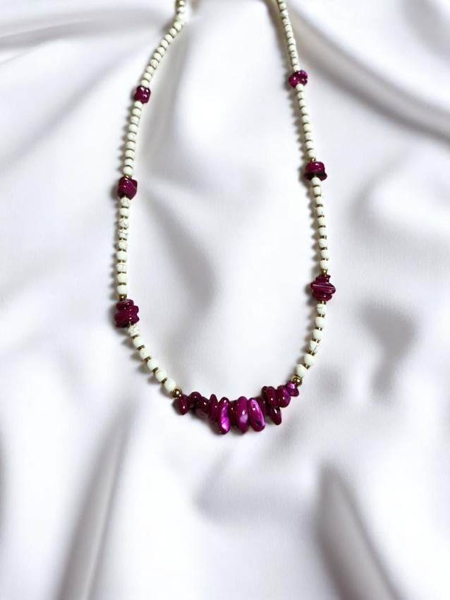 Χάντρες από φυσική πέτρα σε αποχρώσεις μωβ-βατόμουρο και φίλντισι.