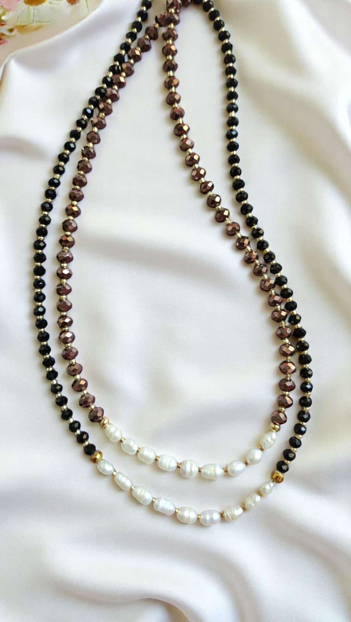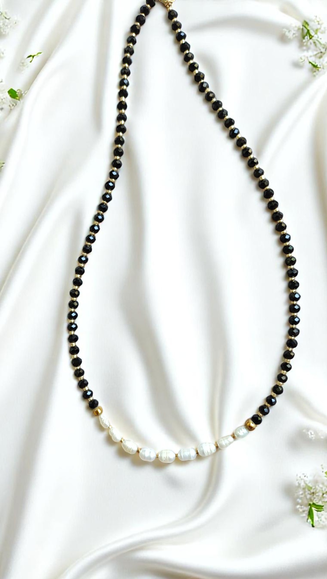 Σαν να ενώθηκαν φεγγάρια και πέτρες λάβας. Μαύρες χάντρες με μαργαριτάρια για μια πιο μυστηριώδη, αλλά πάντα classy εκδοχή.