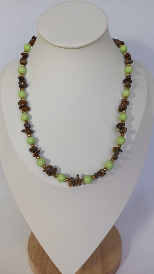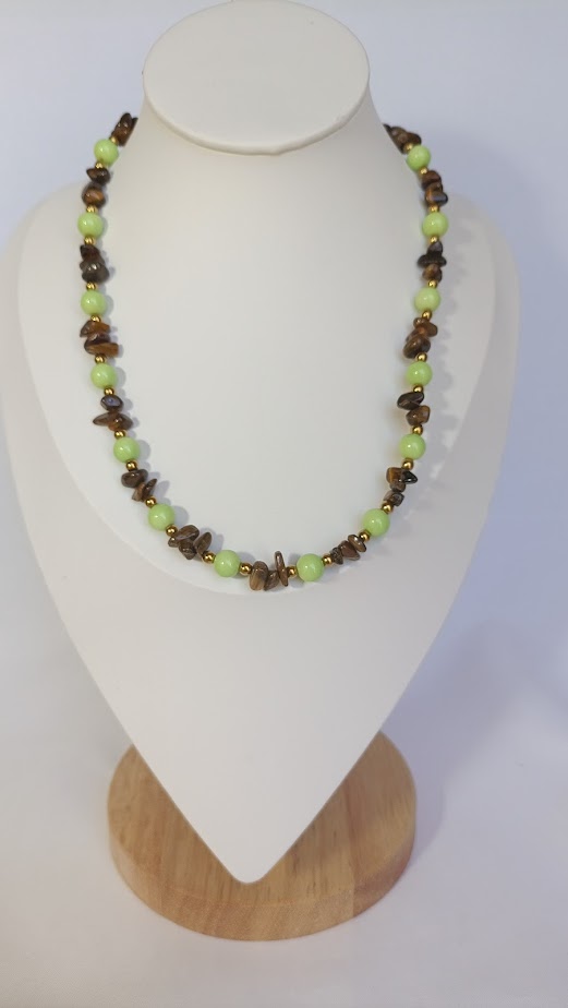 Αρμονικά δεμένο με χάντρες στα χρώματα της ελιάς και του κρασιού. Ιδανικό για φυσικό και κομψό look.