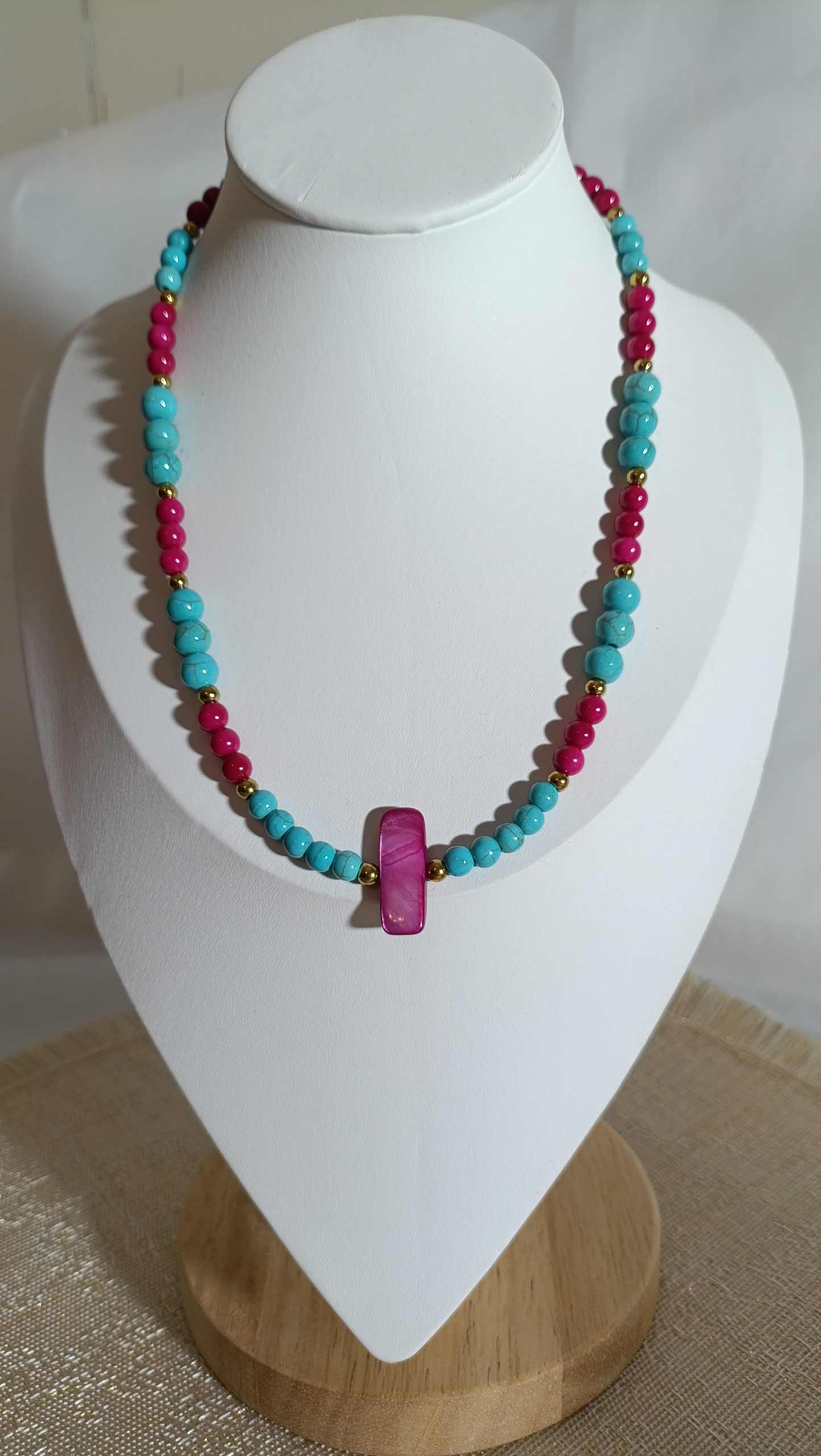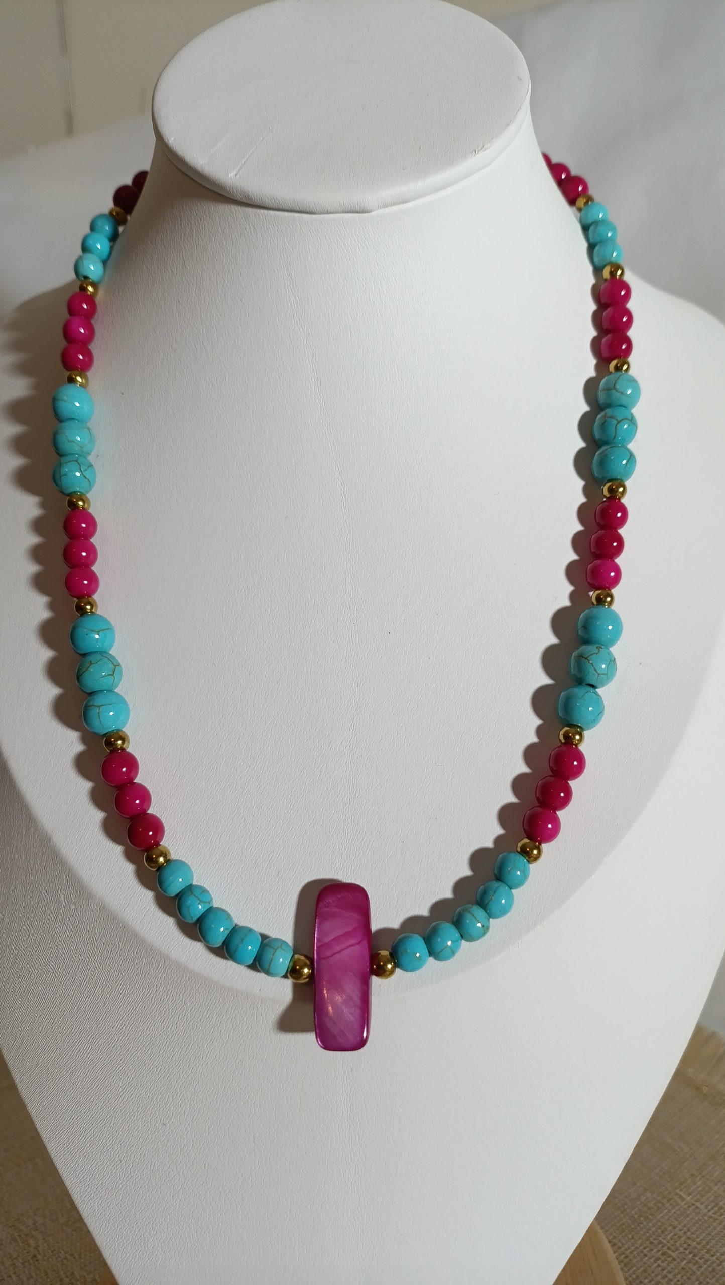 Φούξια και τυρκουάζ, με ενέργεια και ζωντάνια σε κάθε χάντρα.