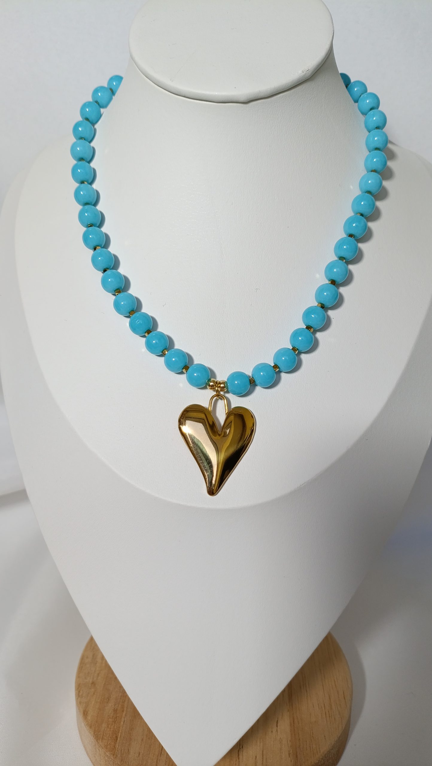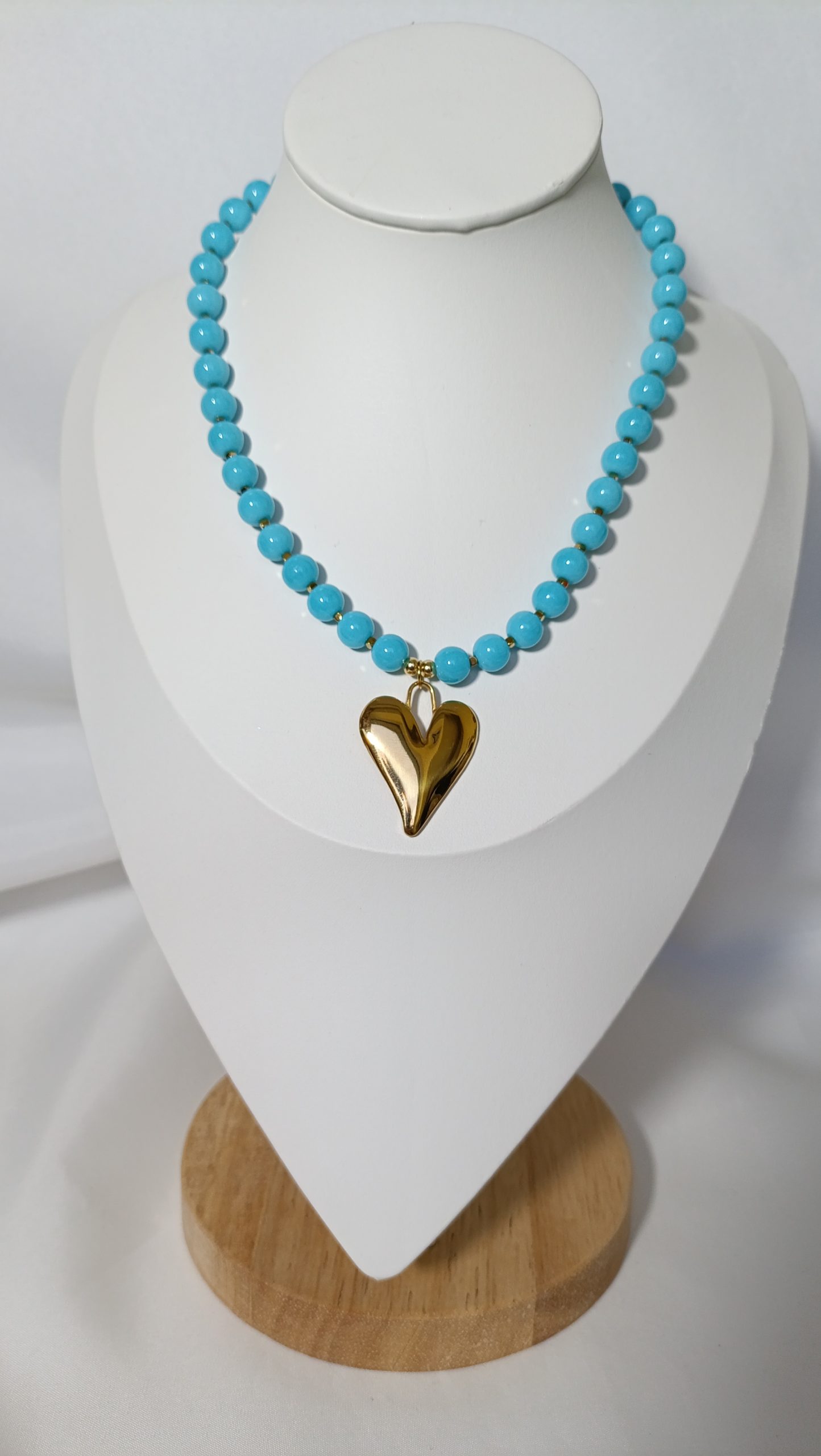 Γαλάζιο και χρυσό καρδιόσχημο charm σε ένα dreamy καλοκαιρινό κολιέ. Σαν η αγάπη να γεννήθηκε μέσα στα νερά. Ελαφρύ και παιχνιδιάρικο, για κορίτσια με όνειρα. Το απόλυτο statement του καλοκαιριού.