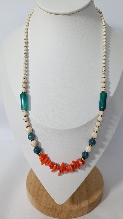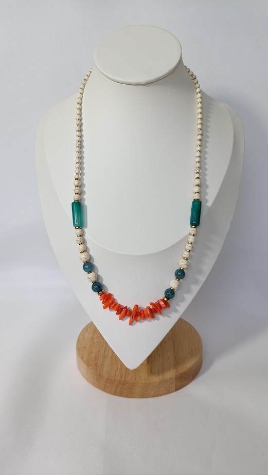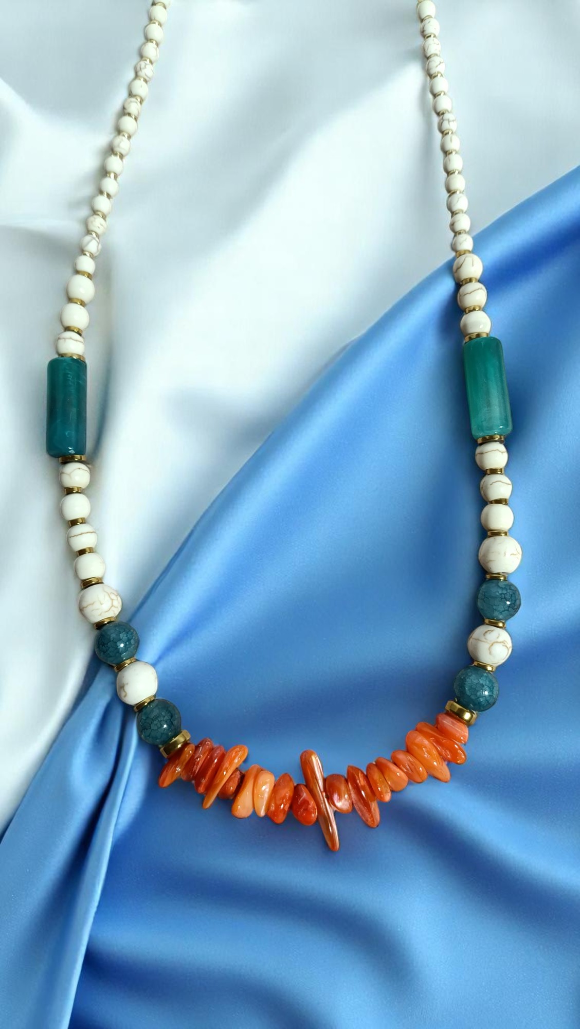 Με πορτοκαλί κοράλλι και πράσινες λεπτομέρειες.