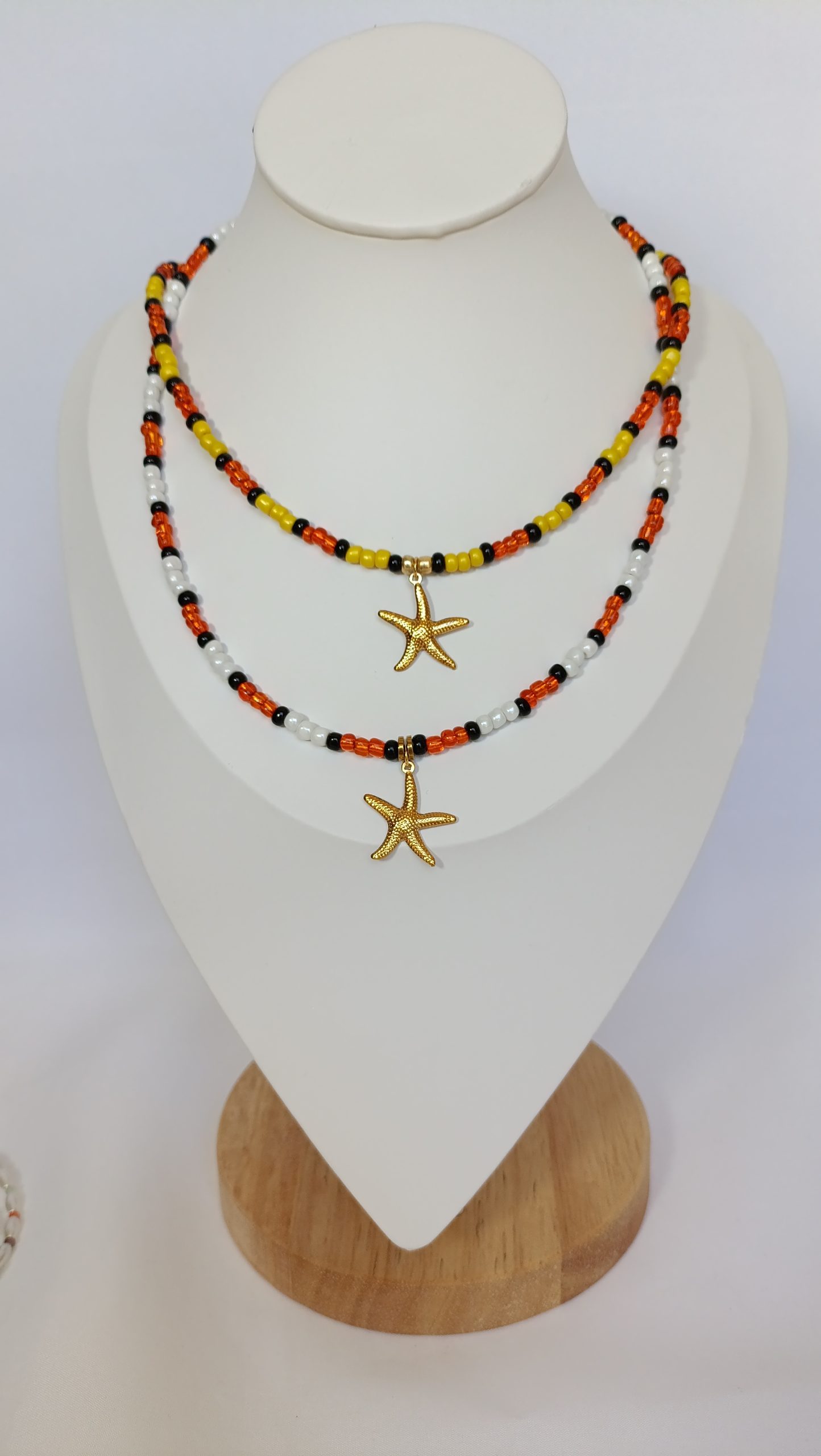 Φως, θάλασσα, ανεμελιά. Το Golden Tide συνδυάζει λευκές και πορτοκαλί χάντρες με λαμπερά χρυσά στοιχεία σε σχήμα αστερία, για κορίτσια που δεν σταματούν να ονειρεύονται παραλίες και καρπούζι. Ένα απόλυτα καλοκαιρινό must-have!