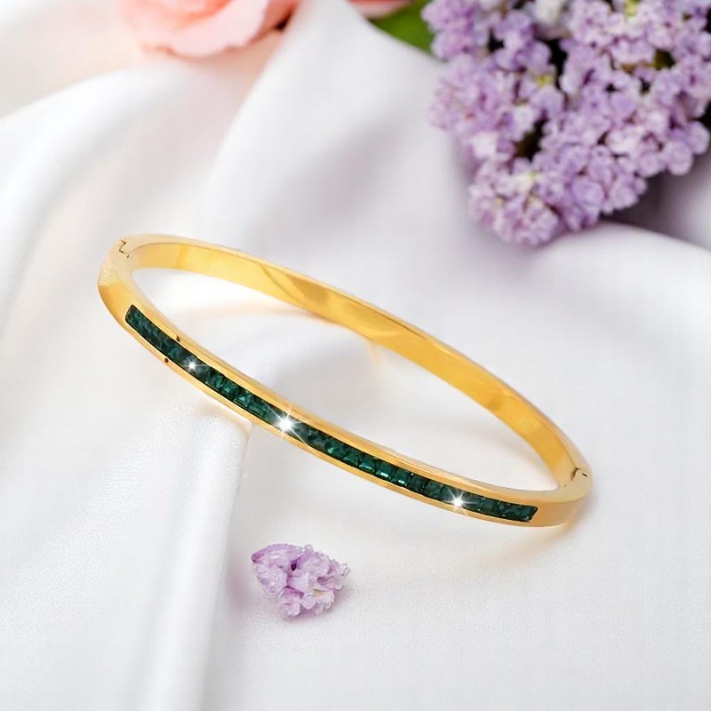 Μία λεπτή λωρίδα από πράσινους κρυστάλλους χαράζει μονοπάτι κομψότητας πάνω σε χρυσή βάση. Ένα must-have piece για κάθε boho queen.
