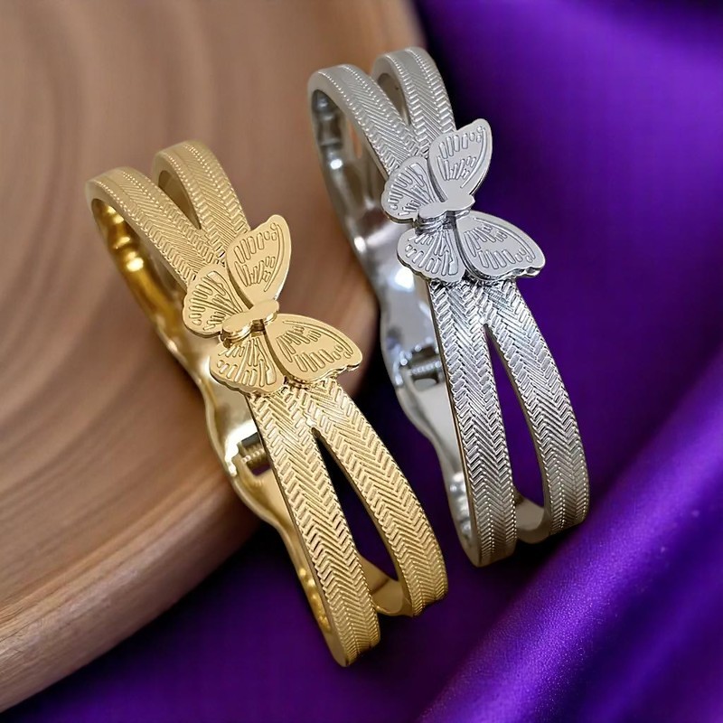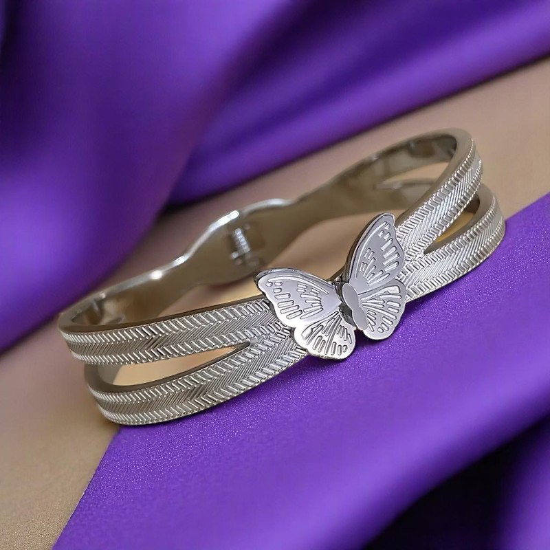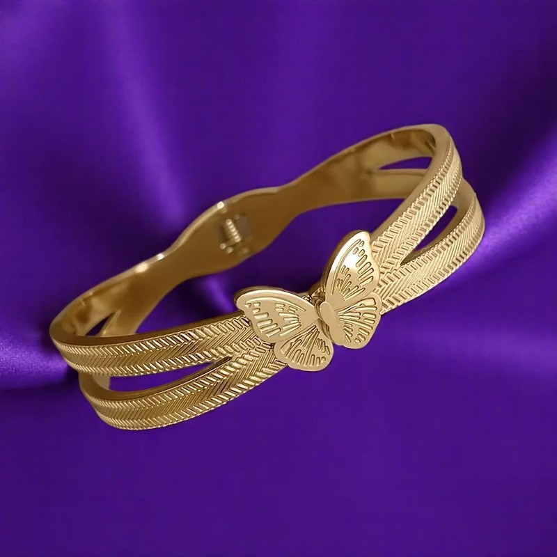 Minimal αλλά εκθαμβωτικό, το “Papillon Royale” είναι ένα elegant βραχιόλι από ατσάλι με ανάγλυφη πεταλούδα στο κέντρο. Διατίθεται σε χρυσό και ασημί  για να ταιριάζει σε κάθε στυλ. Το ανάγλυφο φινίρισμα ενισχύει τη λάμψη του, ενώ η πεταλούδα συμβολίζει την αναγέννηση, την ελευθερία και τη θηλυκότητα. Ένα statement κόσμημα που τραβάει τα βλέμματα.